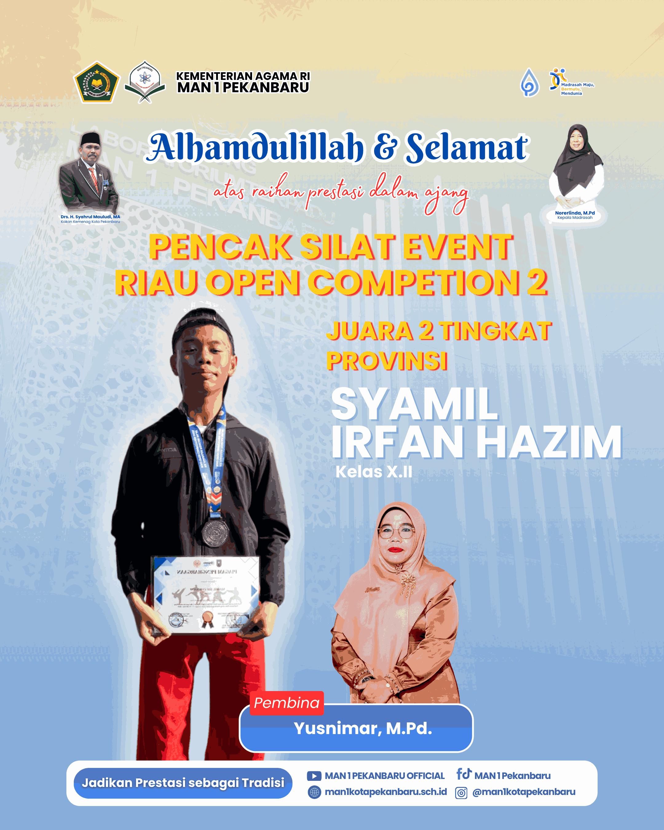 MAN 1 Pekanbaru merupakan institusi pendidikan pertama di bawah Kementerian Agama. Awal didirikannya pada tahun 1978 dengan nama Sekolah Persiapan IAIN SUSQA Pekanbaru karena para alumninya dipersiapkan untuk melanjutkan pendidikannya ke IAIN SUSQA Pekanbaru. Pada tahun 1980-1981, nama Sekolah Persiapan IAIN berubah menjadi Madrasah Aliyah Negeri atau MAN Pekanbaru Selengkapnya . . .